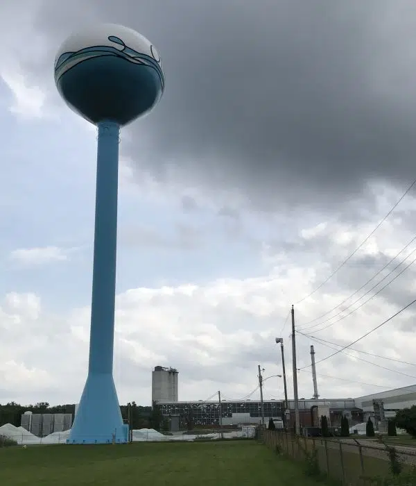 The Ottawa west water tower by Pilkington North America next to Naplate