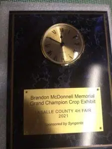 Preston Walter was awarded the Brandon McDonnell Memorial Grand Champion Crop Award at the 4-H Fair Thursday.